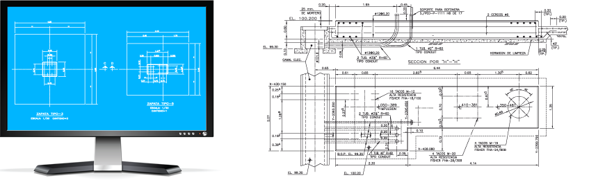 Our personal of civil, develops complete projects of advanced calculation programs for all types of foundations for buildings (control rooms, electric substations, etc.), bridges, support static, dynamics, etc.